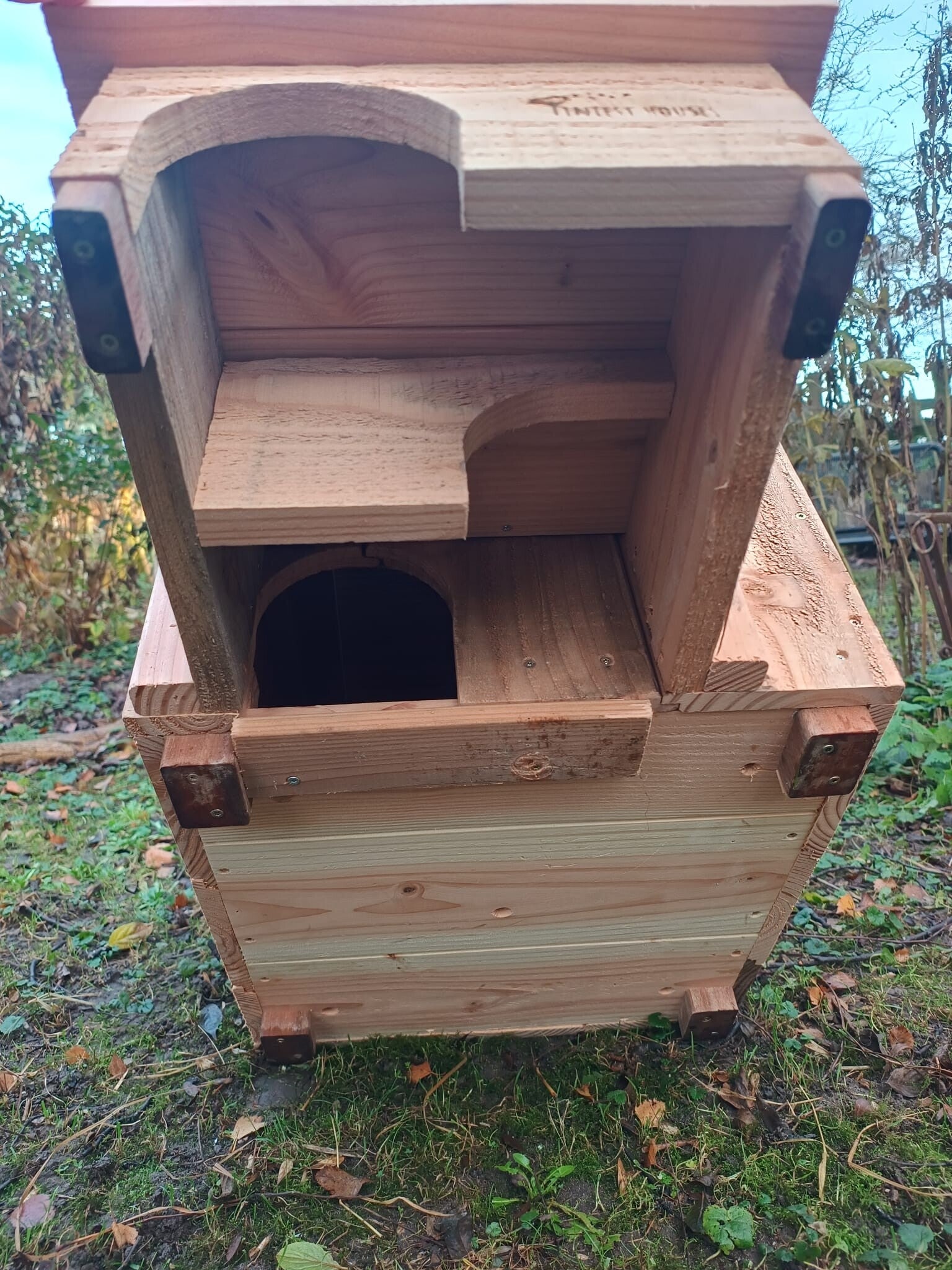 Plaatsingstip: Zet het huisje op een rustige, beschutte plek in de tuin, bij voorkeur half verborgen onder bladeren of groen.